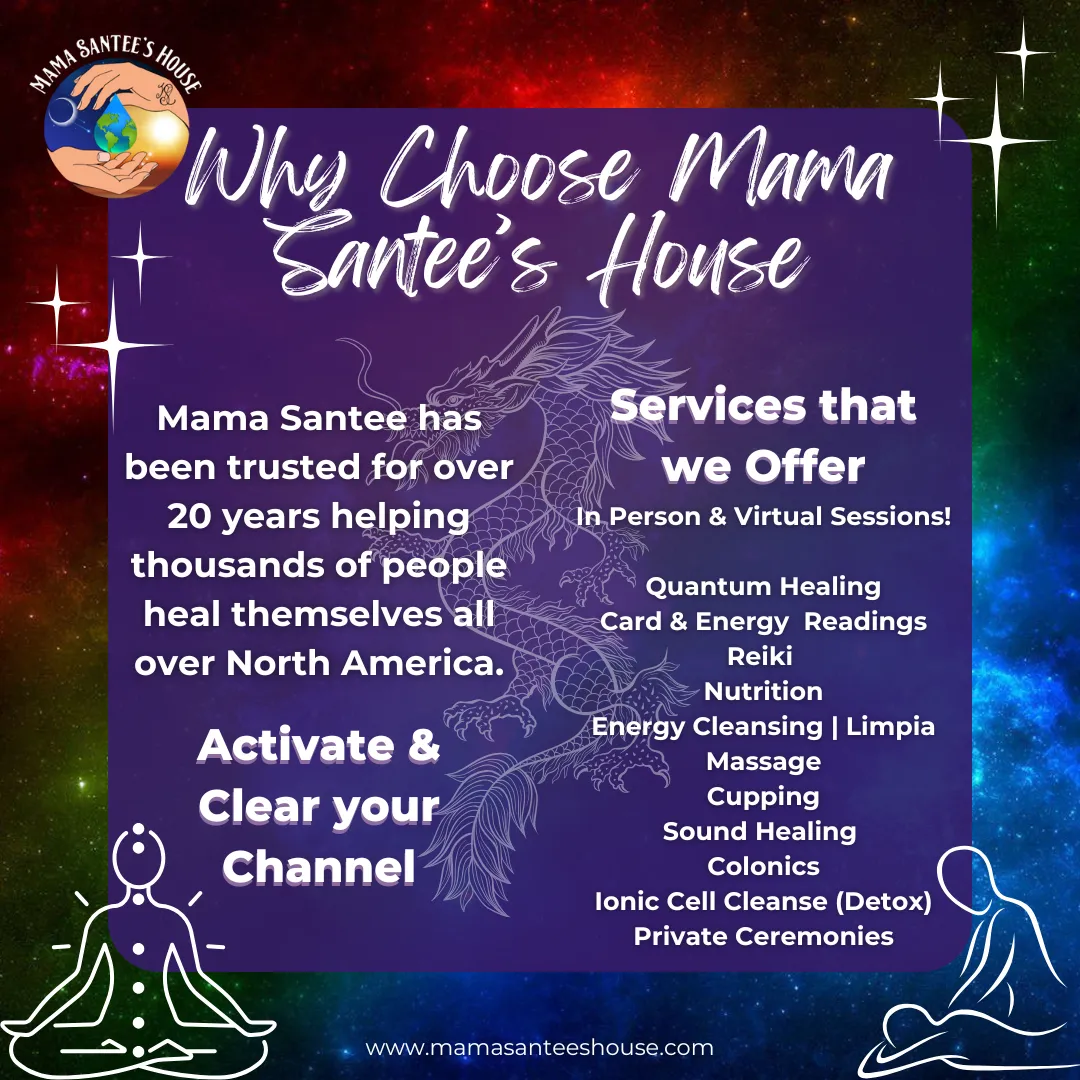 At Mama Santee’s House, we believe everyone has the power to heal—sometimes we just need the right support and guidance. Our mission is to help you reconnect with your innate ability to heal through a wholistic approach that nurtures the body, mind, and spirit.